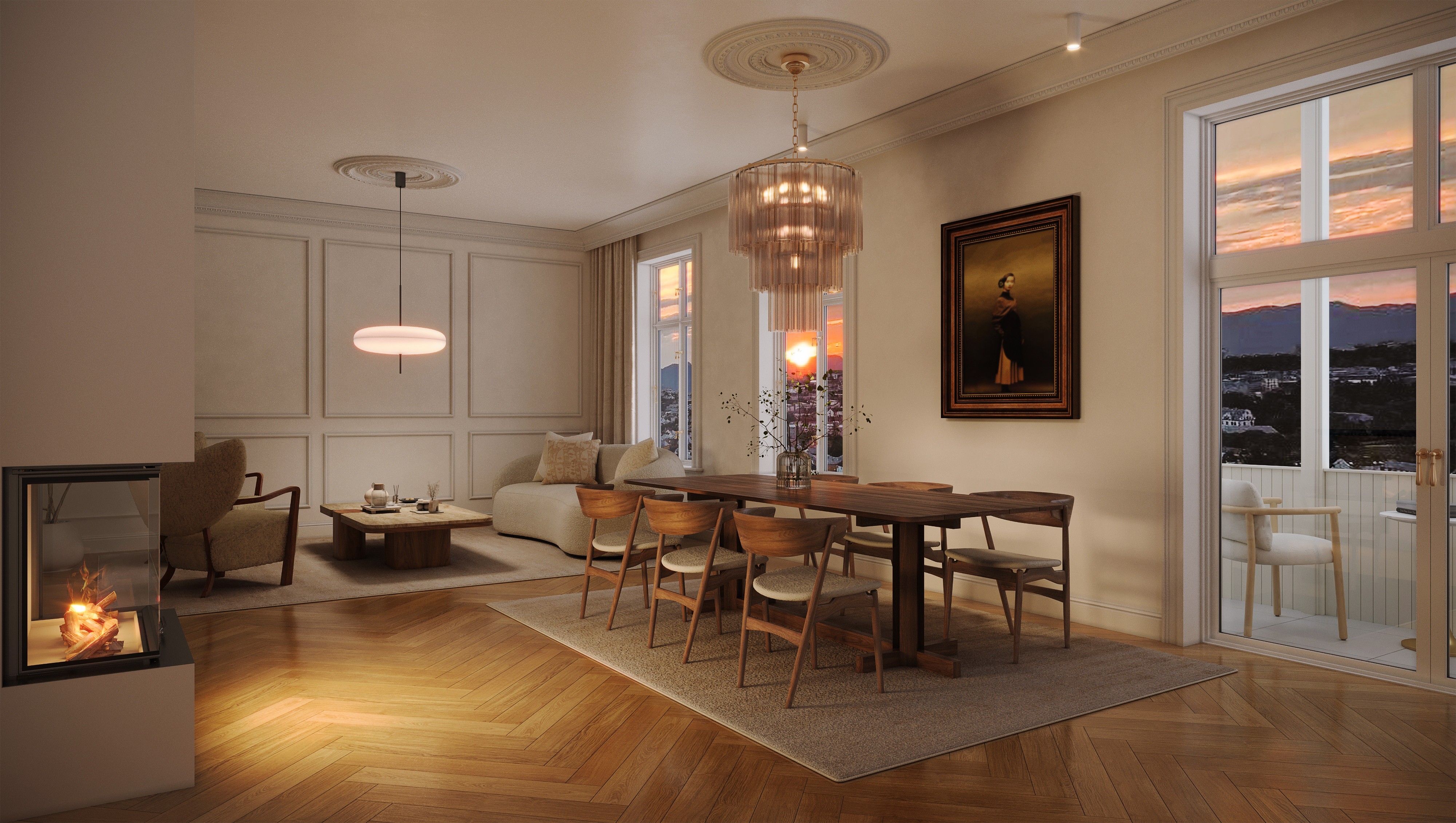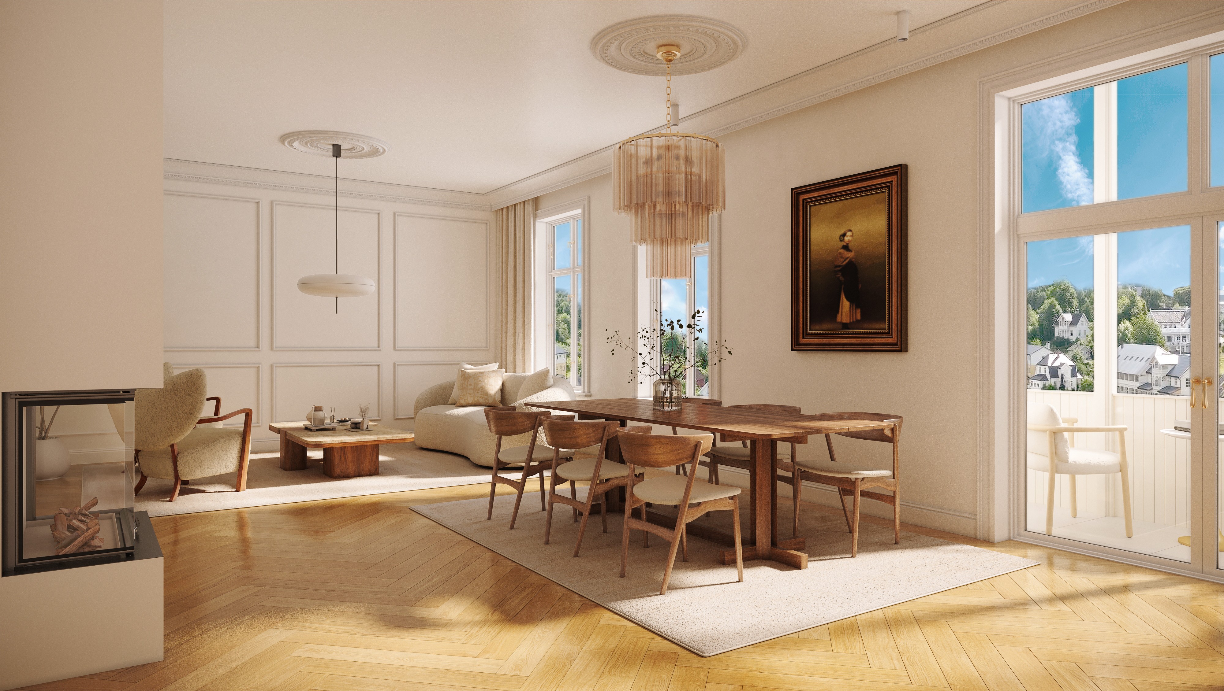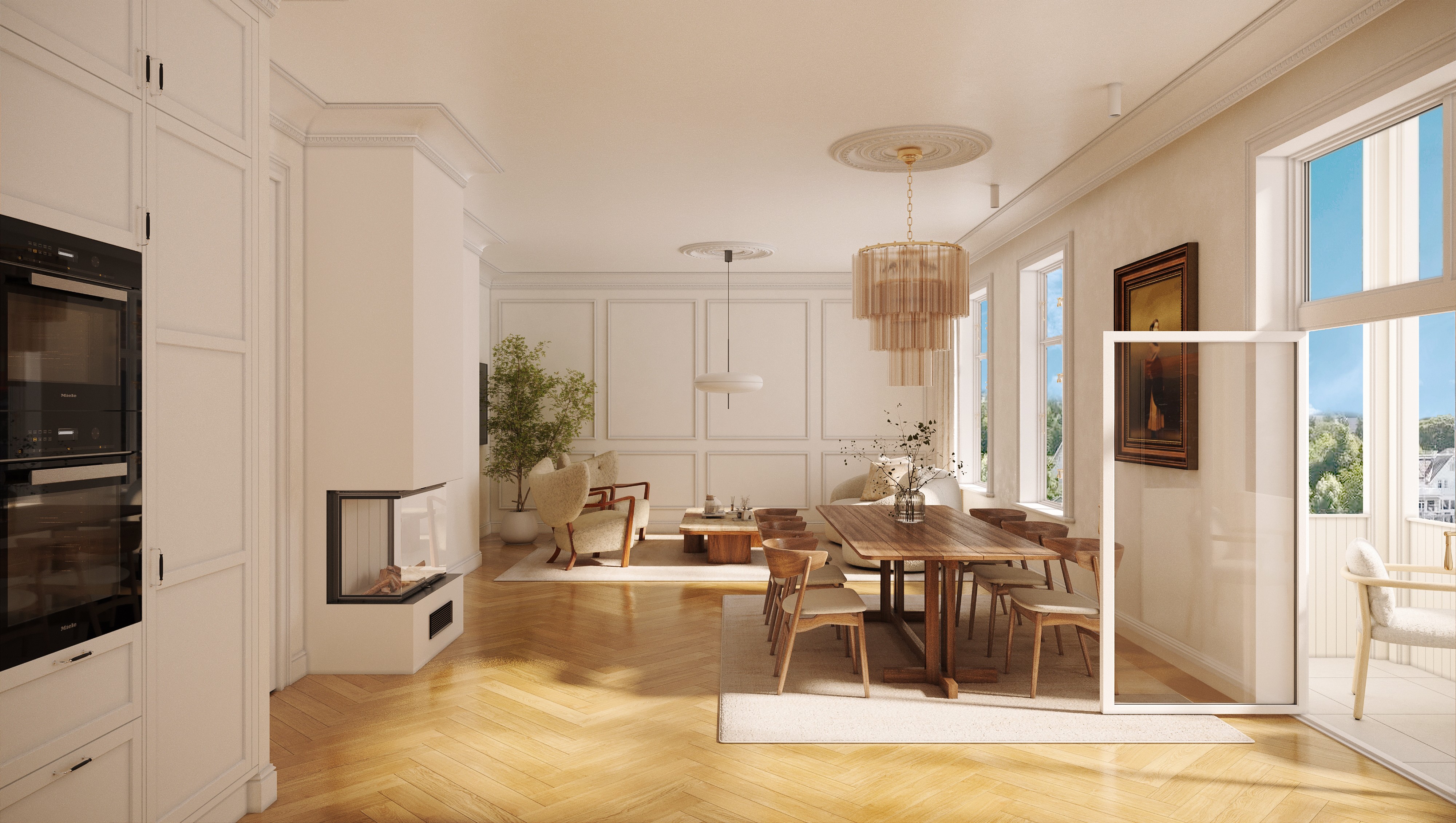 Her skapes hjem som oppleves åpne, rolige og harmoniske – med en naturlig flyt mellom rommene.