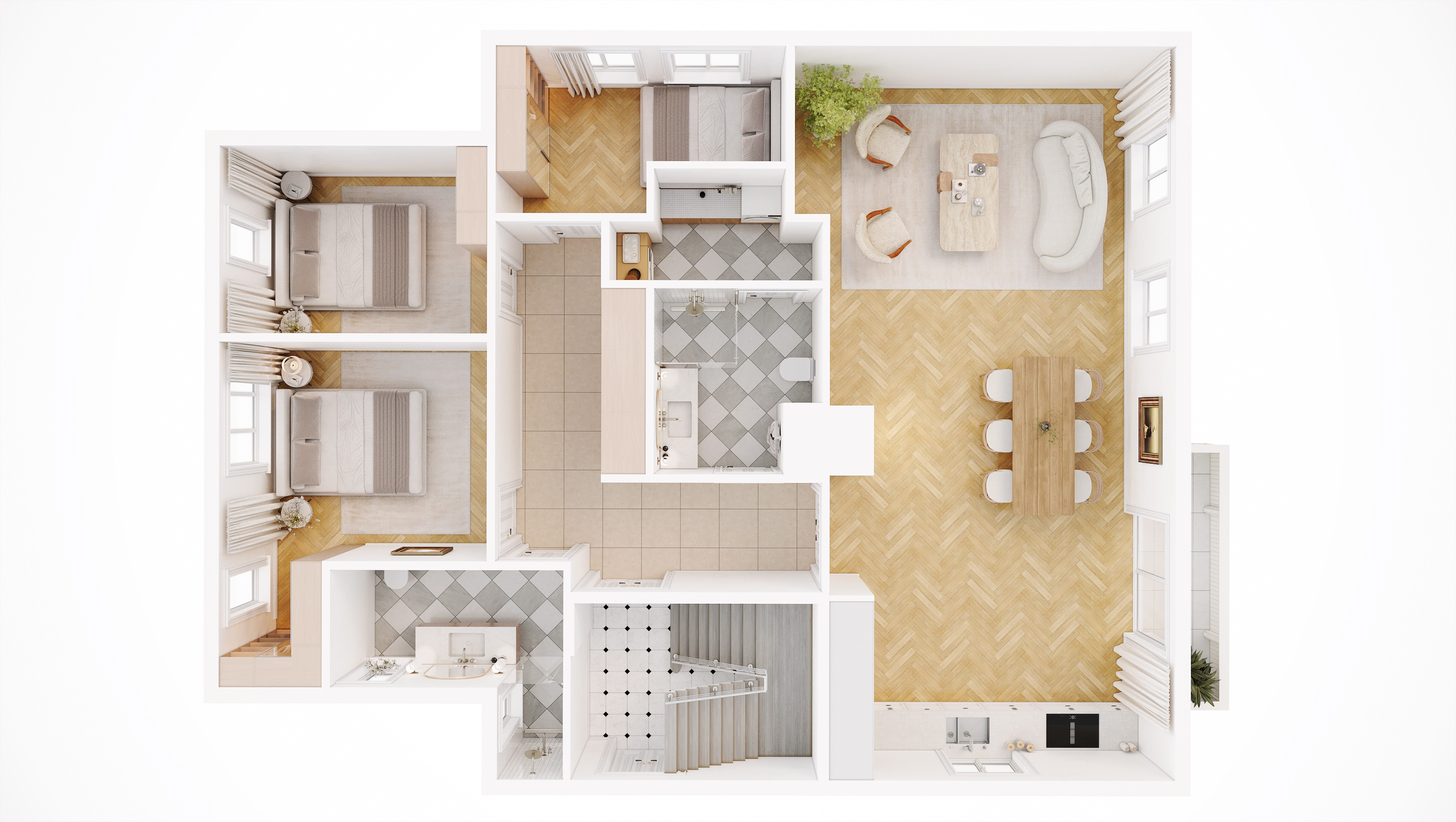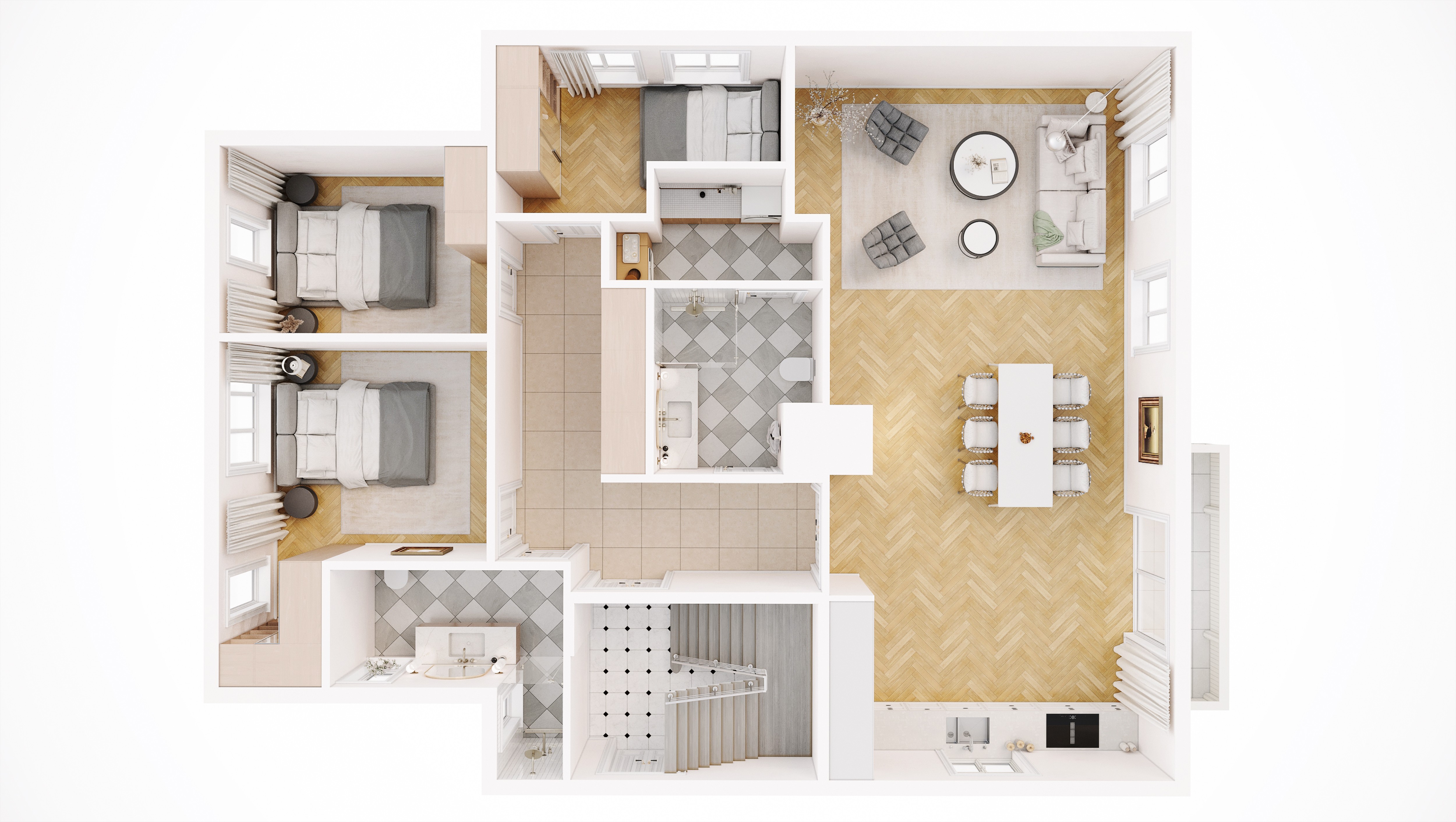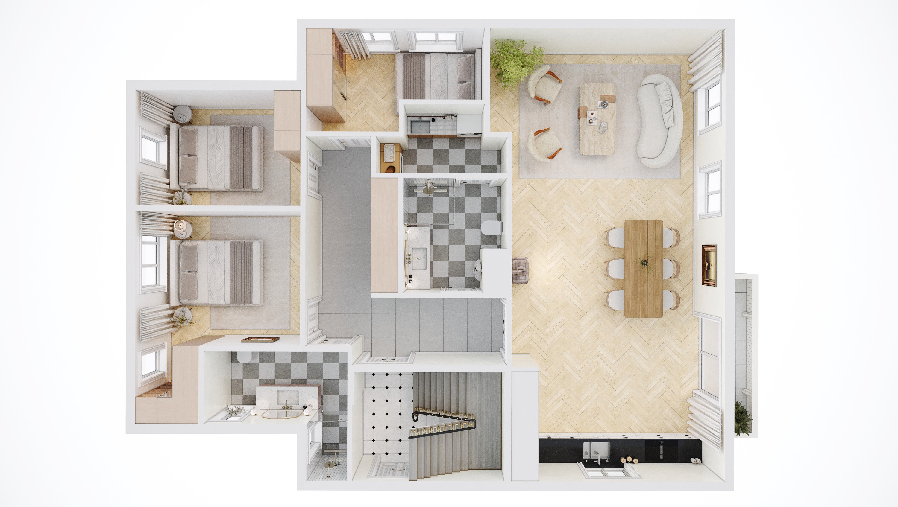 Her skapes hjem som oppleves åpne, rolige og harmoniske – med en naturlig flyt mellom rommene.